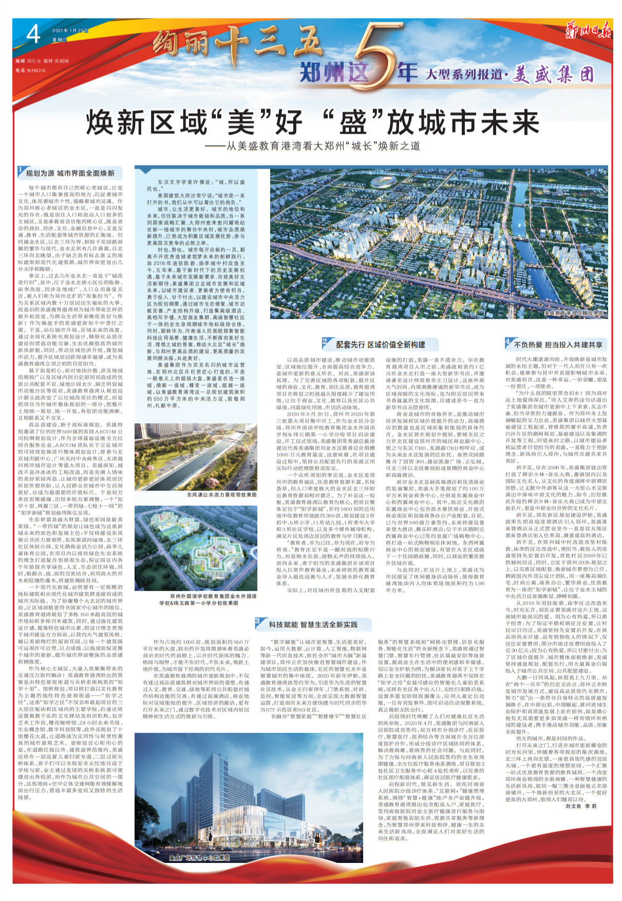 時(shí)也,勢(shì)也。城市每開啟新的一頁(yè),都離不開優(yōu)秀造城者筑夢(mèng)未來的躬耕踐行。自2016年進(jìn)駐陳砦、廟李城中村改造至今,五年來,基于新時(shí)代下的歷史發(fā)展機(jī)遇,基于未來城市發(fā)展新要求、百姓美好生活新期待,美盛集團(tuán)立足城市發(fā)展和區(qū)域未來,以城市建設(shè)者、更新者為使命擔(dān)當(dāng),勇于投入、甘于付出,以建設(shè)城市中央活力區(qū)為規(guī)劃綱要,通過城市生態(tài)修復(fù)、城市功能完善、產(chǎn)業(yè)結(jié)構(gòu)升級(jí),打造集高級(jí)酒店、高檔寫字樓、大型商業(yè)集群、高端智慧社區(qū)于一體的全生命周期城市地標(biāo)級(jí)綜合體,同時(shí),聯(lián)袂華為、河南省人民醫(yī)院探索智能科技應(yīng)用場(chǎng)景、健康生活,不斷探究美好生活、理想之城的答案,推動(dòng)大北區(qū)“城長(zhǎng)”煥新,與鄭州更高品質(zhì)的建設(shè)、更高質(zhì)量的發(fā)展同頻共振,共赴美好。