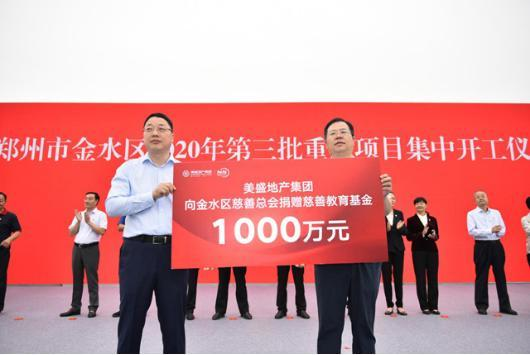 2020年,9月29日,鄭州市2020年第三批重大項目集中開工儀式現場(金水區分會場),美盛地產集團常務副總裁徐建民代表美盛地產集團向鄭州市金水區慈善總會捐贈1000萬元教育基金。