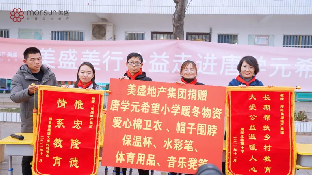 總有人乘著愛的翅膀,托起孩子的夢想;總有人在最美的時(shí)光,呵護(hù)著學(xué)生的成長。2021年12月15日,美盛集團(tuán)美行公益“筑童夢 美好盛開”主題活動(dòng)走進(jìn)商丘市睢縣蓼堤鎮(zhèn)唐學(xué)元希望小學(xué),為那里的200多名孩子帶去溫馨的禮物,并同他們一起度過了美妙且有趣的一天。
