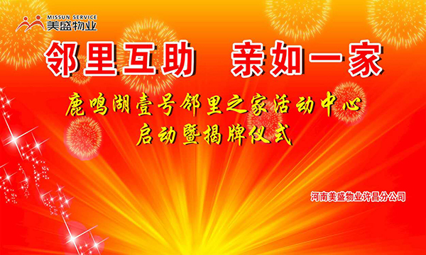2019年4月21日上午9點(diǎn),伴隨著潤雨細(xì)無聲的點(diǎn)綴,主持人宣布美盛物業(yè)許昌分公司鹿鳴湖壹號(hào)小區(qū)“鄰里之家”活動(dòng)中心啟用暨揭牌儀式正式開始。