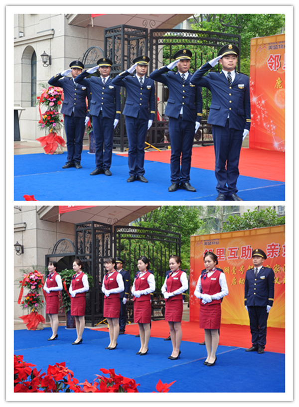 開幕儀式,我們物業(yè)秩序與客服團(tuán)隊(duì)首先亮相,進(jìn)行精彩日常高端服務(wù)的風(fēng)采展示。禮賓團(tuán)隊(duì)標(biāo)準(zhǔn)的敬禮、客服團(tuán)隊(duì)優(yōu)雅嫻熟的服務(wù)禮儀及秩序團(tuán)隊(duì)鏗鏘有力的盾牌表演,贏得到場嘉賓和業(yè)主的陣陣掌聲。