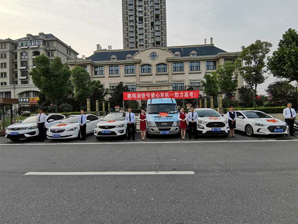 高考前一天服務(wù)中心組織員工愛心車隊(duì),護(hù)送考生加油助威。