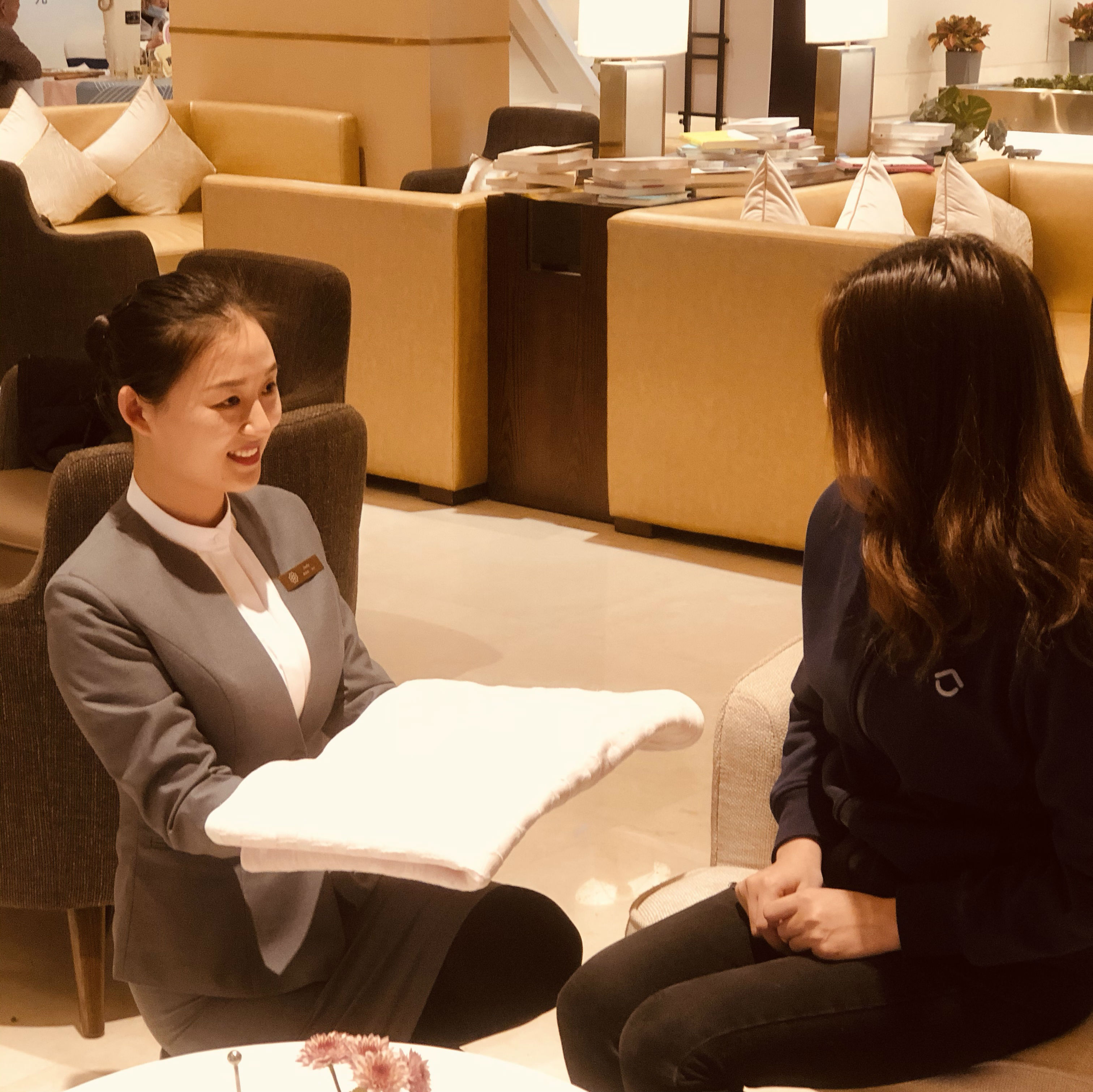 一次客服人員給客戶遞送飲品時,發現一位女士捂著肚子,聲音低沉,習慣性的詢問了幾句,得知該女士身體有些不適,于是我們的客服小姐姐立刻給客戶沖了一杯暖心紅糖姜茶,并為客戶披上了搭毯,女士非常感動,不停的贊美我們客服小姐姐心細。