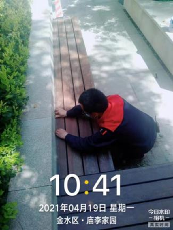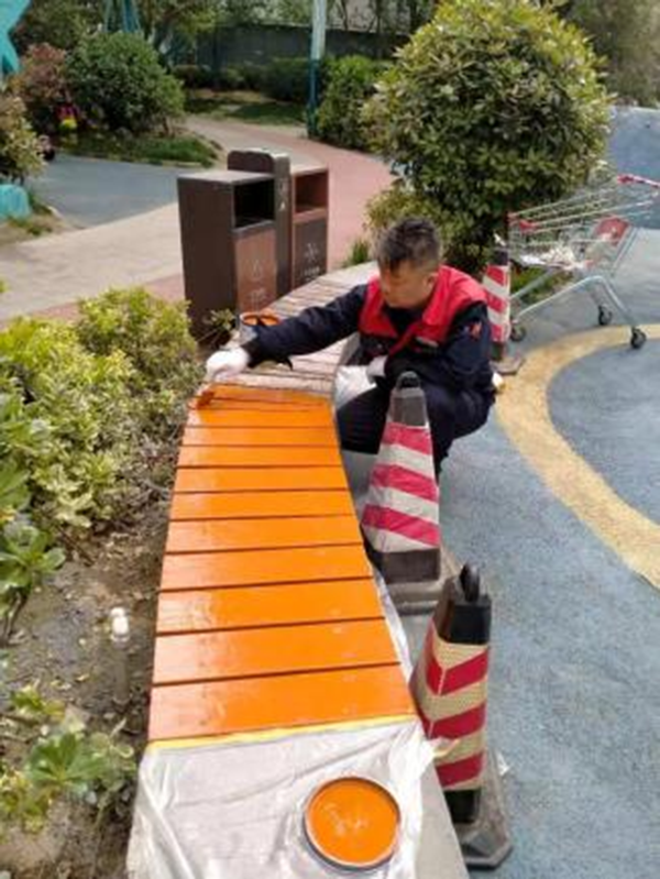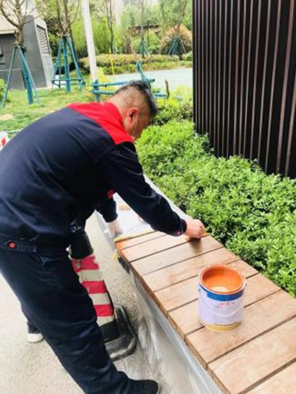 給小區(qū)的長(zhǎng)條凳刷上油漆,不但美觀、醒目,還起到防止長(zhǎng)條凳被氧化的作用,延長(zhǎng)使用壽命。美化小區(qū)從細(xì)節(jié)做起,業(yè)主也紛紛為項(xiàng)目這種注重細(xì)節(jié)的服務(wù)點(diǎn)贊。